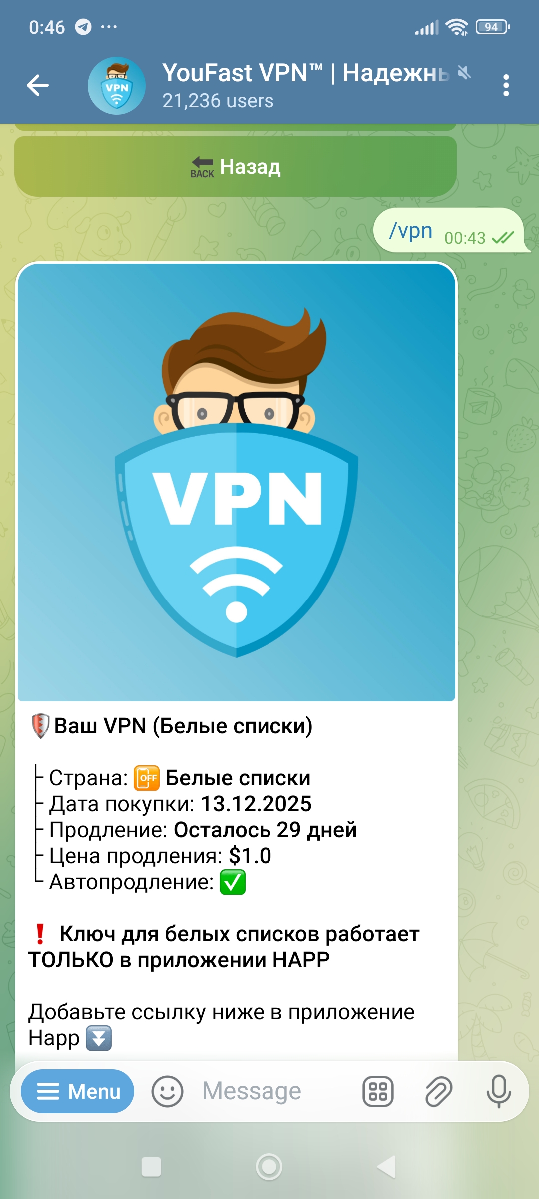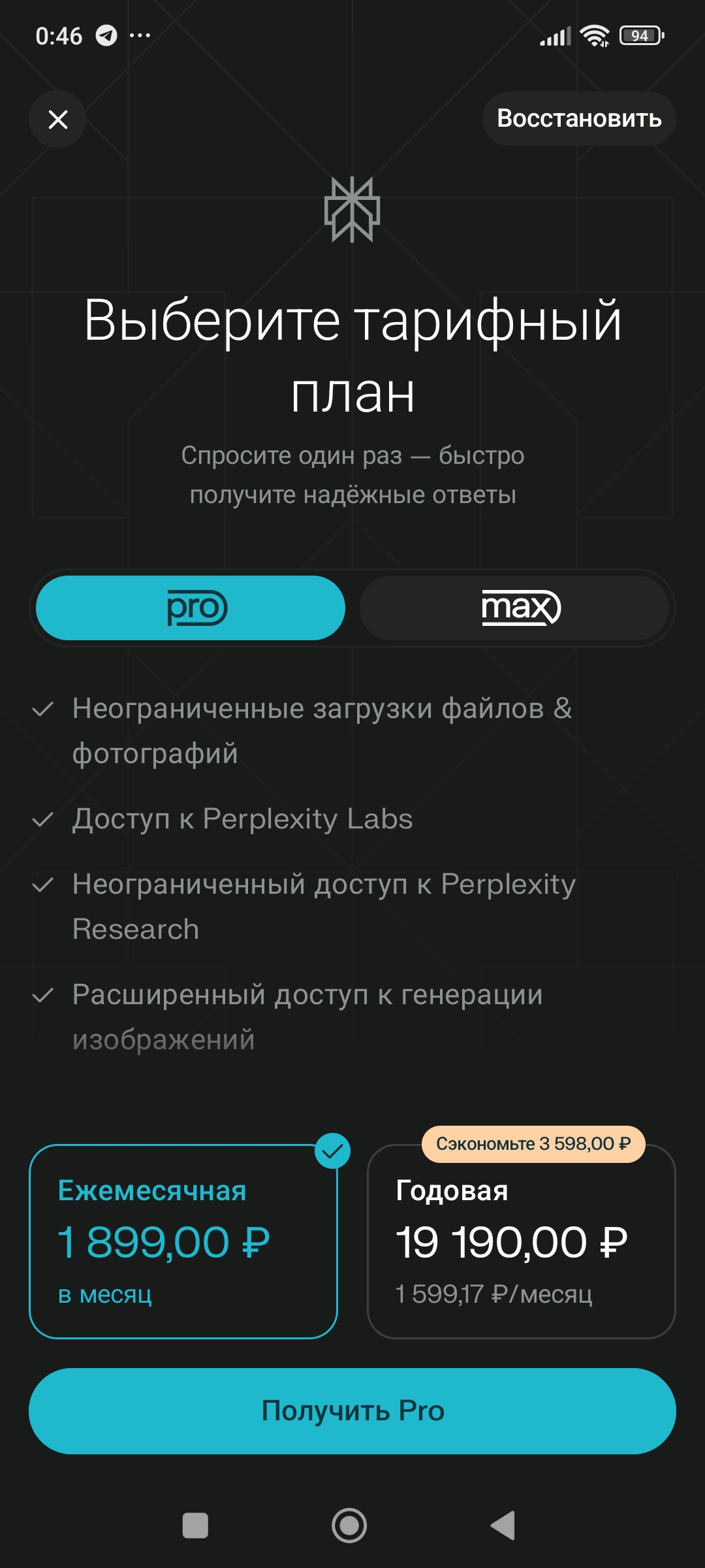 Занимался вечером чисто айтишными делами. Приобрёл впн Нидерландов и для белых списков. Белые списки - особенно актуально, так как в моем пгт мобильный интернет глушат примерно пол месяца. Также пытался настроить perplexity - остановился на установке, нашел посредника в лице оплатим. Ру, но чуть - чуть не успел порешать вопрос, так как с 00:00 они не работают. Надо завтра этим заняться - хочу тариф про.