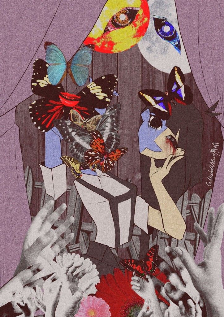 Я ЛЮБЛЮ ГОЛУБЫЕ ЛАДОНИ И ЖЕЛЕЗНЫЙ ЗАНАВЕС НА КРАСНОМ ФОНЕ СЫРЫЕ ГУБЫ ПОД ВОРОНЬЁМ И ТЕЛА, ИЗЪЕДЕННЫЕ ЧЕРВЁМ Я ЛЮБЛЮ ГЛУХОЕ ЭХО И ГНИЛУЮ ЖИЖУ В МОЕЙ ГОЛОВЕ РОДНУЮ ПЛЕСЕНЬ ИКОТЫ, БЛЯ БУ Я — НЕКРОФИЛ, Я ЛЮБЛЮ СЕБЯ