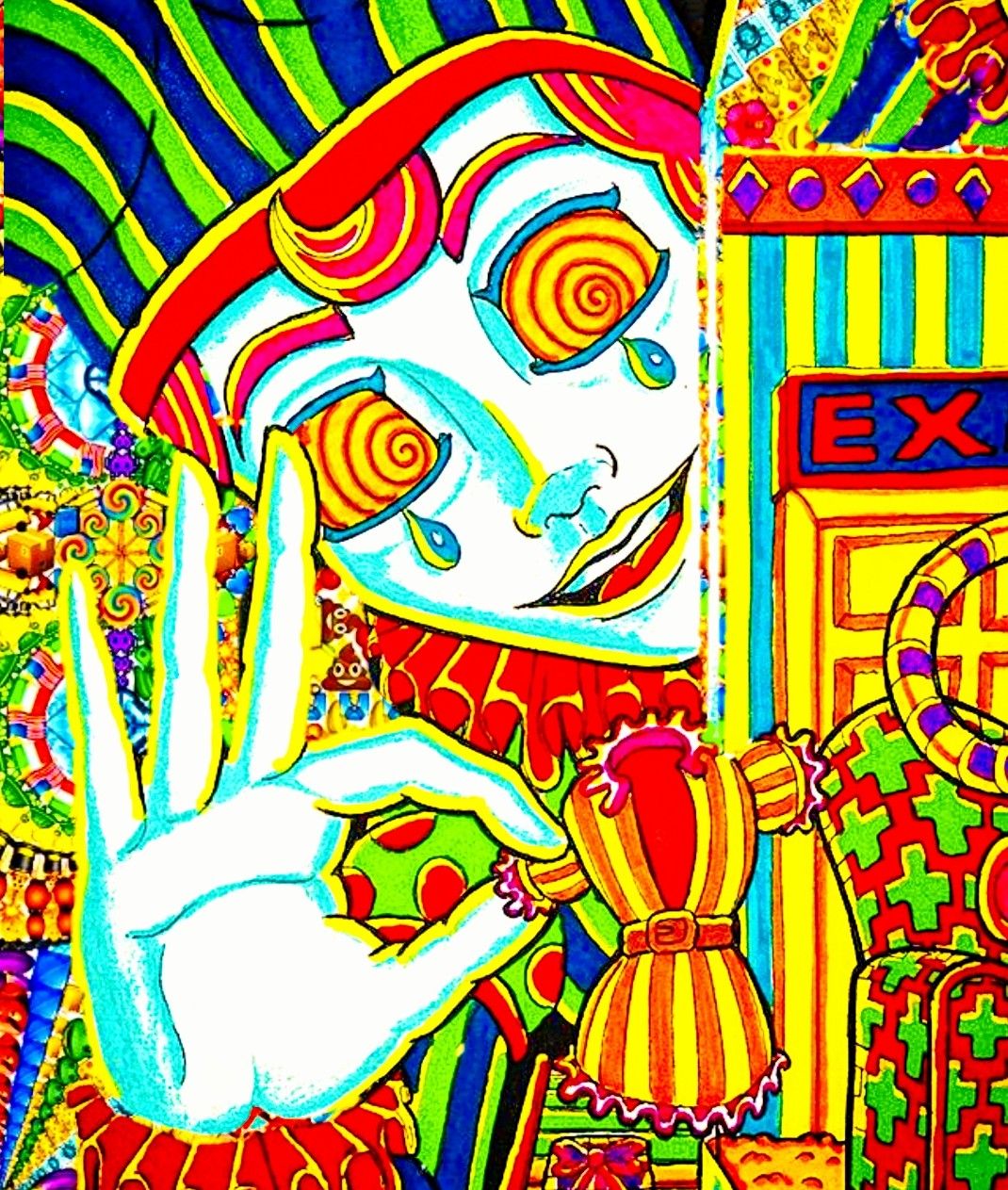 ВЫБЕРУСЬ ИЗ ЭТИХ АСТРАЛОВ НО ПОД КОНЕЦ Я УВИДЕЛ ДВЕРЬ И УЖЕ ГОЛОСОМ ГОВОРЮ ТИПО ОТПУСТИТЕ УЖЕ МЕНЯ ПОЖАЛУЙСТА Я ЗАЕБАЛСЯ БЛЯЯЯТЬ И Я ПРОЛЕТАЮ СКВОЗЬ НЕЕ ТАМ СИДИТ КАКОЕ ТО ГУМАНОИДНОЕ СУЩЕСТВО ВСЕ В КАКИХ ТО ЯРКИХ УЗОРАХ ТОЖЕ ТАКИХ ФРАКТАЛЬНЫХ Я ВЛЕТАЮ ЕМУ В ГОЛОВУ ЕГО РАЗНОЦВЕТНЫЕ ВОЛОСЫ ПРЕВРАЩАЮТСЯ В СПЛОШНУЮ СТЕНУ ИЗ ЛИСТЬЕВ КОТОРЫЕ РАЗВОРАЧИВАЮТСЯ ПЕРЕД О МНОЙ И МАШУТ МНЕ НА ПРОЩАНИЕ КАК РУКОЙ Я ВЛЕТАЮ В ПУСТОТУ ТАМ ТАНЦУЕТ НЕОНОВЫЙ ЗЕЛЕНЫЙ СКЕЛЕТ ШЕСТИРУКИЙ С НОЖАМИ В РУКАХ ПОТОМ ОН СВОРАЧИВАЕТСЯ В СПИРАЛЬ И ВСЕ ИСЧЕЗАЕТ И БОЛЬШЕ Я ЭТИХ АСТРАЛОВ НЕ ВИДЕЛ И СМОГ НОРМАЛЬНО УСНУТЬ ПОСЛЕ 2Х ДНЕЙ БЕЗ СНА И Я ТАК ОБРАДОВАЛСЯ ЧТО Я БОЛЬШЕ НЕ ВИЖУ ВСЕ ЭТО ДА ЭТО БЫЛО ПО НАЧАЛУ ВЕСЕЛО НО ПОД КОНЕЦ Я УЖЕ ПРОСТО НАЧАЛ СХОДИТЬ С УМА ЧТО ЭТО НАВСЕГДА И Я В ЭТИХ АСТРАЛАХ ЗАСТРЯНУ И ТОЛЬКО ПОСЛЕ ВОДКИ МЕНЯ ОТПУСТИЛИ
