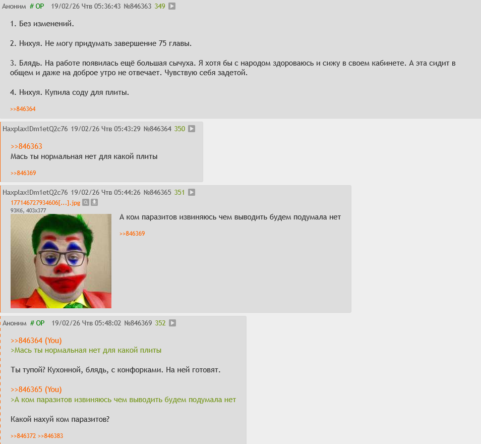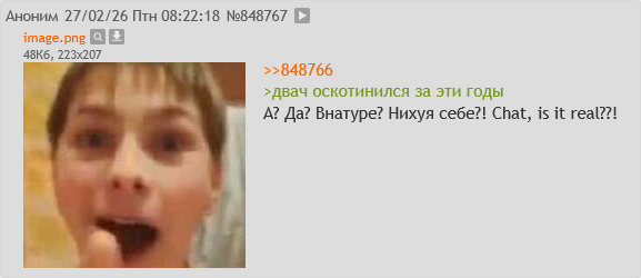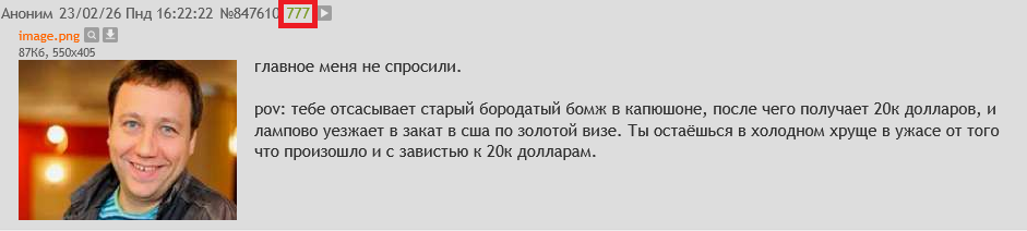 >>843605 >ТОП СОСКИ о которой ты мечтаешь Эт ты мечтаешь. Мечтатель. >тебе приведется бля крокодил Что мешает сказать: "мааам что за уродину ты привела". >НУ ОНА ИЗ СЕМЬИ ХОРОШЕЙ Вот это кстати соглашусь. Чё там мамка подразумевает под "хорошей семьёй" - вообще не понятно. Так понимаю, "хорошей" наверное считается семья нищих солевых мутантов их сталинского барака. А вот дочка директора ЕКГОК - это "плохая", потому что "богатая". Богатым завидуем, поэтому будем в нищете жить, дикую яблоню жрать, а с бедной солевой алкашкой хоть пообщаться "по человечески!" можно - не за бесплатно конечно же, в середине разговора она начнёт ныть и попросит отложить сотку на бухло - но мы ж люди святые, отдадим им сразу всю зп, в сами жить на похоронные от сынишки будем, когда они придут.