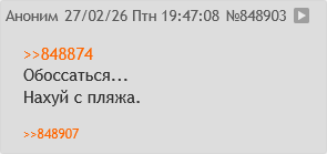>>844005 >>844026 У меня горит с беспруфности твоей позиции. Ну ладно, пусть даже так. Но делать вид, что это у меня оторванная от некой реальности слабая и глупая позиция, несмотря на все те аргументы, которые я предлагал в своем треде, — вот это бесит.
