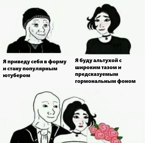 >>850743 А ведь из них и правда могла бы получится красивая пара. Травмированная альтушка с проблемной башкой, такой же травмированный скуфендуй со странностями. Он бы дал ей любовь, которой ей так не хватает. Она бы хоть человека из него сделала. Бороденочку бы научила шампунькой мыть, волосеночки на башке набок зачесывать, чтобы лысину не было видно. Типичная такая славянская семья с разницей в возрасте 10+ лет.