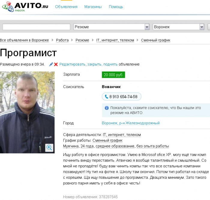 >Ебать, придурок впервые в жизни переехал в какое-то очко, и сидит всех туда затягивает. Я вот смог, говорит, с 10летним опытом, нахуй, устроится на проходную админом. Каким нахуй 10летним опытом!!!?? 2 года у меня опыт всего лишь. А впизду. Этож очевидно троллинг, надо поменьше писать, а то как говорится "у кого букв больше тот и лалка"