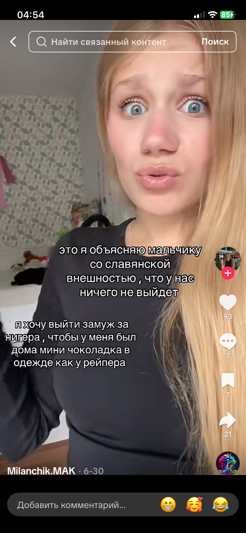 Я понимаю что в этом треде дохуя тех, кому это нравится и был бы за, и скорее всего подумают нахуй я сюда это скинул. Но одно дело скинуть сюда древний видос с шлюхой или sexwife, а другое когда в тик токе такая залупа. Стало просто интересно, неужели белые женщины настолько ебанутые?) Наши на чм 2018 все показали конечно, но пиздюшки… и эти аккаунты с названиями про черных - либо это нац куколды фейки, либо заказ евреев, либо реальность. Все равно контента нет, решил скинуть для обсуждения