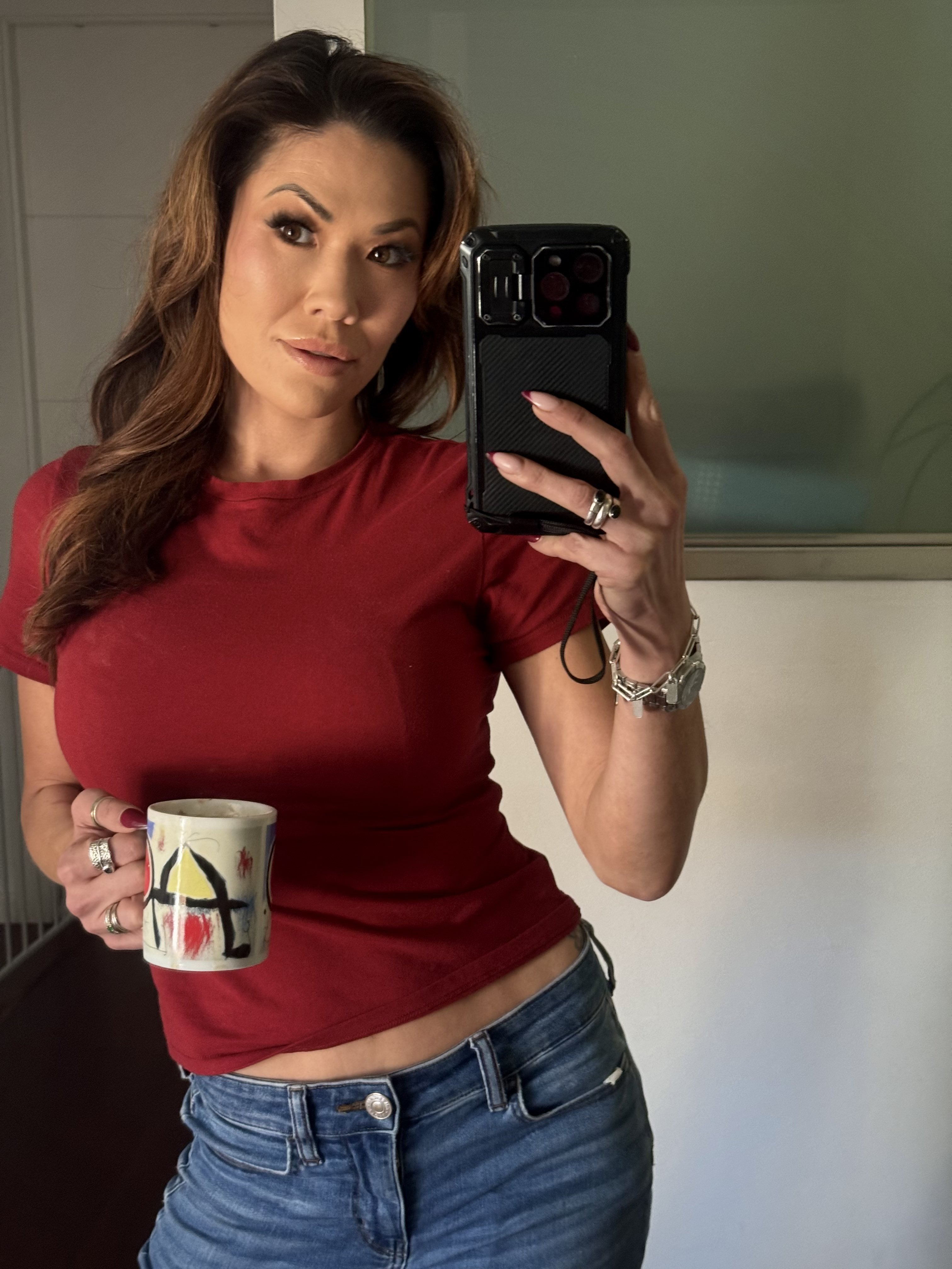 Просто охуительная дама, идеальные силиконовые сиськи, сочное тело, блядское выражение лица. Шишка колом, стоит только на нее взглянуть. Жаль только в жопу пока не дает