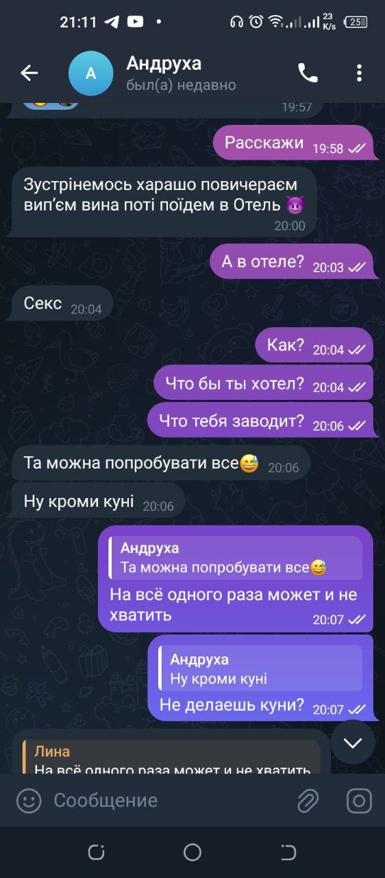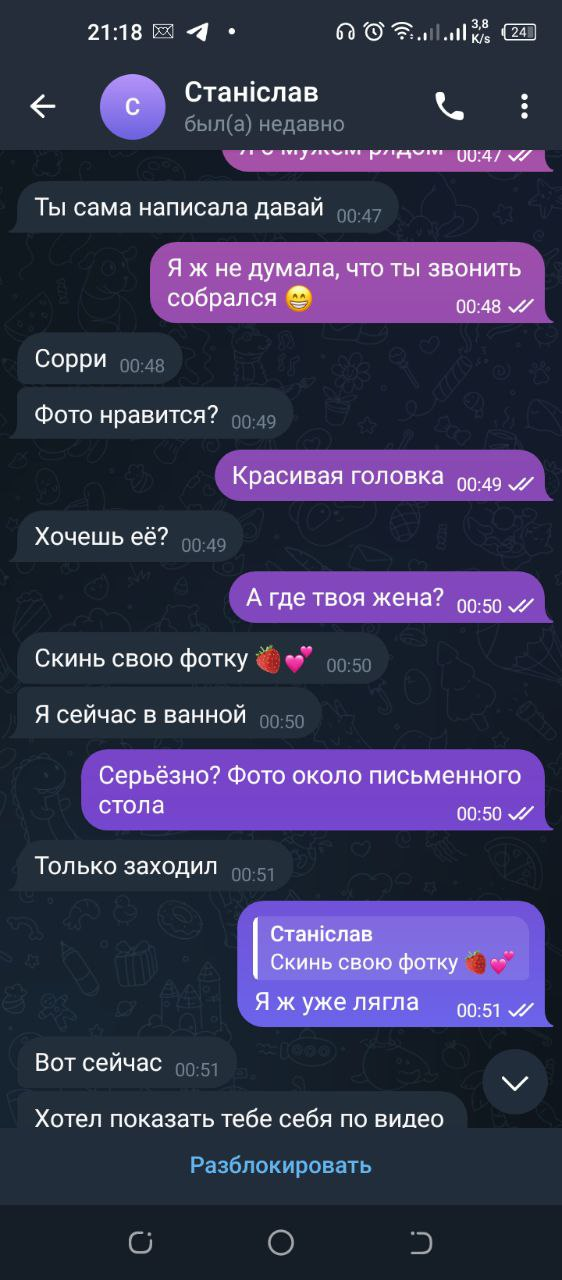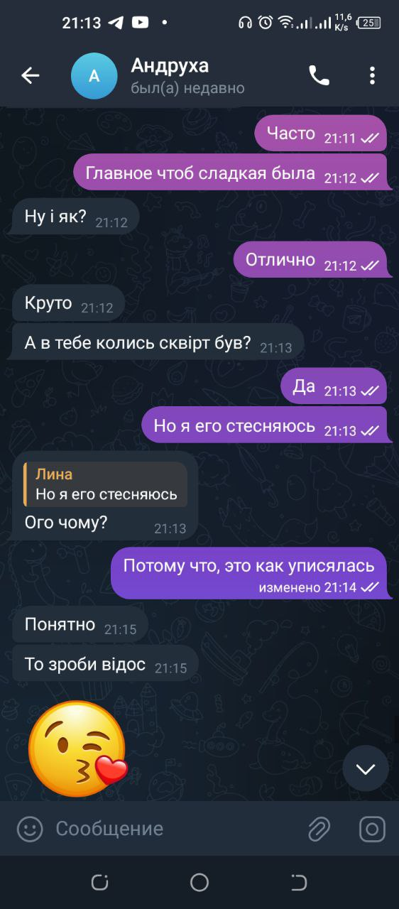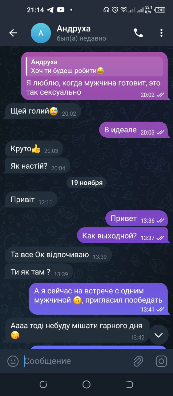 в переписках есть ее флирт с грязным чучмеком который даже на русском толком писать не может без грамматических ошибок там ну тупо блять Гоги ахахахахха он ещё и дальнобойщиком вроде был