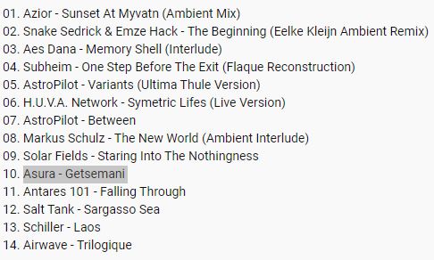 >>18057 (OP) А ты не очень внимательный, не правда ли? Там в первом же посте треклист. Вот я его тебе скину, вдруг не заметишь. Заодно вот ссылка на трек: https://www.youtube.com/watch?v=rtVcenzdbfw а то вдруг не догадаешься, какой же именно.