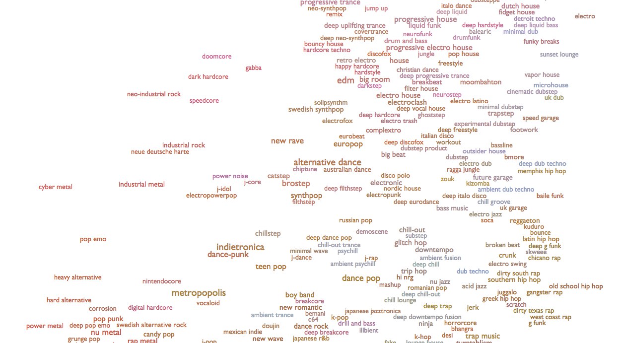 Сервис Spotify сделал впечатляющую аудиокарту всех известных жанров современной музыки, их оказалось 1387.