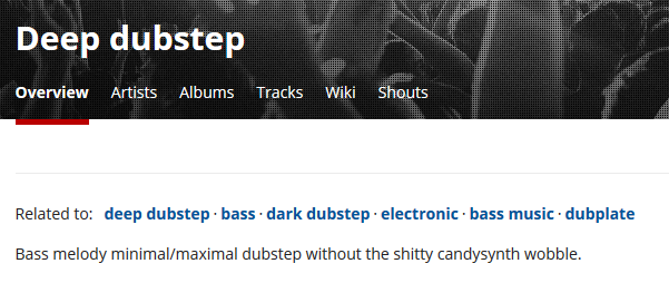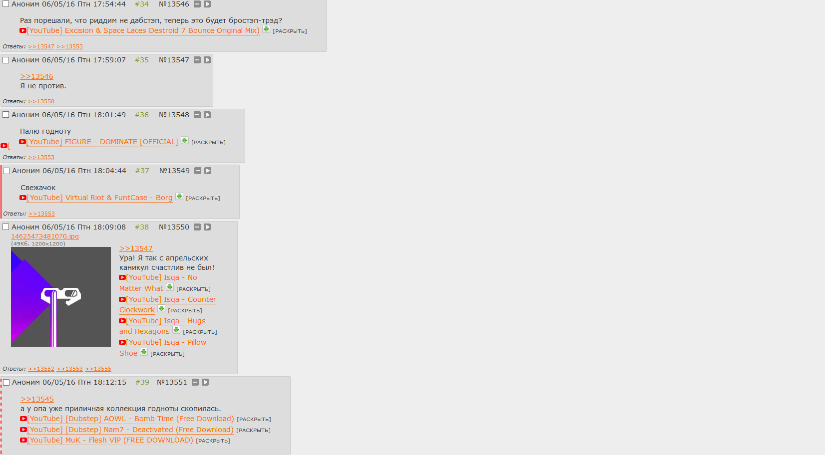 >>13530 Если хочешь разобраться, что такое риддим, то вот, держи, 3 самых что ни на есть риддим-трека. https://www.youtube.com/watch?v=ObBUss33gPU https://www.youtube.com/watch?v=n5nVjJpm-Mk https://www.youtube.com/watch?v=lDiyqh2zWCY >Поиск по Риддим дабстеп + Дигитал мистикс нихуя не дал Мне наверное стоило упомянуть, что название Riddim Dubstep появилось намного позже, где-то после 2010го, мало того, оно ещё и неофициальное!) есть и такие, кто называет данную музыку Trench (например, дабстеп-музыкант Getter), кто-то называет её Swamp, кто-то Skank...а кто-то вообще не признаёт ответвление и кличет просто дабстепом. Но я не стал это вбрасывать в оп-пост, понадеявшись что местный анон не доебётся. Но, блин, это ж двач.