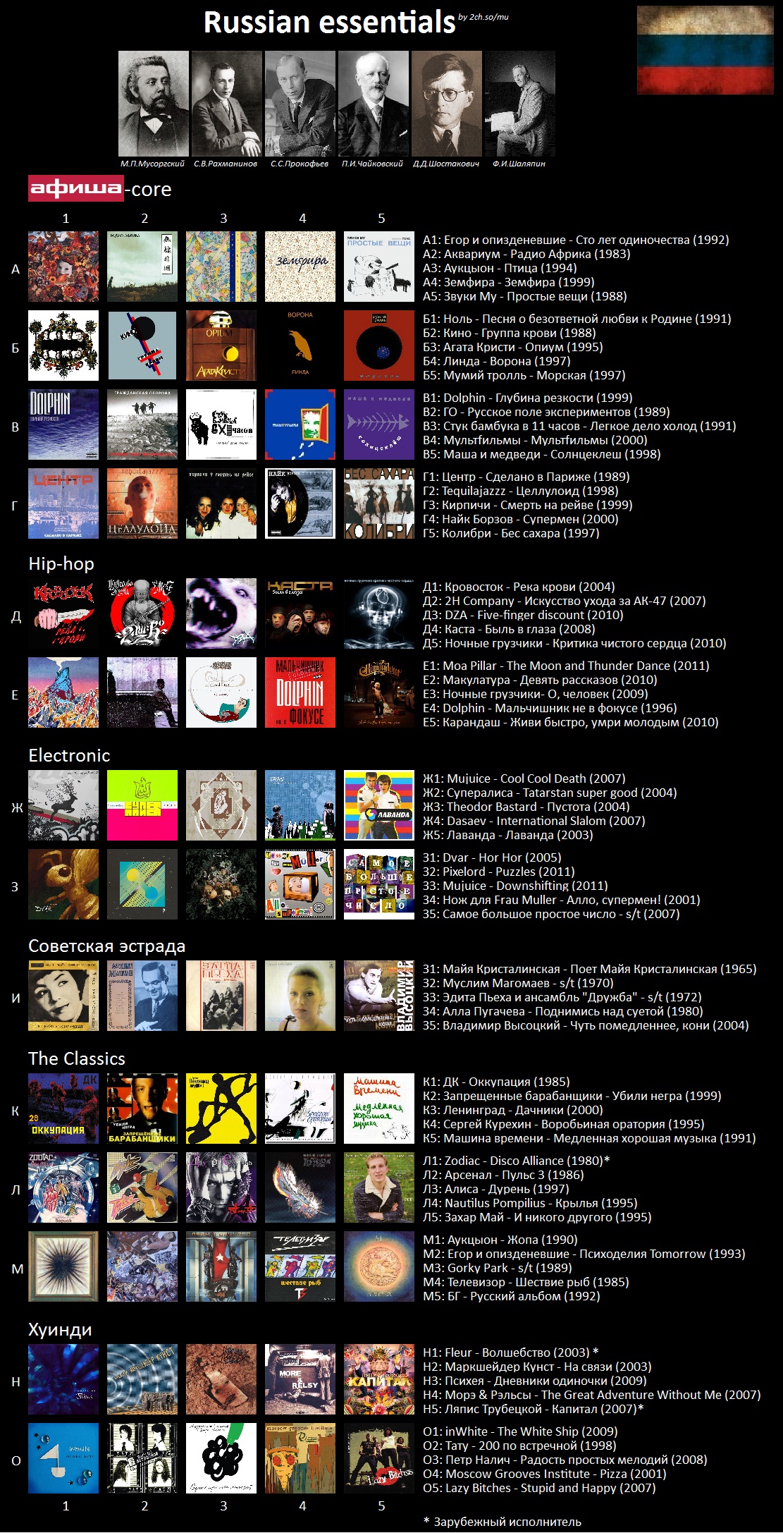 >>5819 Ну ты как это... странный, в общем. Я не из тех, которые мечутся между двумя "или-или" : русское - 10 из 10 господе, зарубежное - говно, кал; русское - все говно, зарубежное - 10 из 10 господе! То, что в России есть что-то хорошее, по моему мнению, никак не влияет на тонну годноты за рубежом, да и вообще сцена у них так-то в разы лучше развита. Просто сам совсем недавно начал местами слушать русскую эстраду (если это так можно назвать) и понял, что у нас есть таки свои жемчужины, вот и решил, что буду потихоньку с ними знакомиться, но если зарубежную электронную музыку я слушаю не первый год, и уже примерно знаю что где и как (да и всякие RA существуют), то вот в русском я только этот листок, Феничева, да 4 позиции Бруно слушал, не считая всяких ребята вроде Летова и Аквариума.