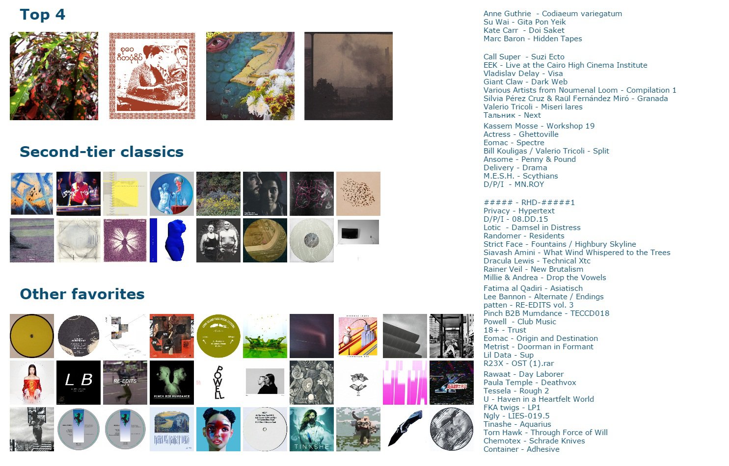 >>5822 Это, наверно, я по привычке. Нынче в интернете, если сказал чего хорошего про Россию сразу же считают, что ты все зарубежное ненавидишь и считаешь калом. Да я все скушаю, ты мне пару лейблов уже подкинул - уже хорошо. Главное направление взять, а дальше уж сам разберусь, поначалу сложно. Транс не люблю, вот его и впрямь не умею слушать. Ну и хаус сильно танцевальный для меня. Я все больше по аутизму всякому: даб техно, дарк эмбиент. Из любимых альбомов, всем известных, за последний год: Linear S decoded, ипишки Container и Shackleton, Kiasmos.