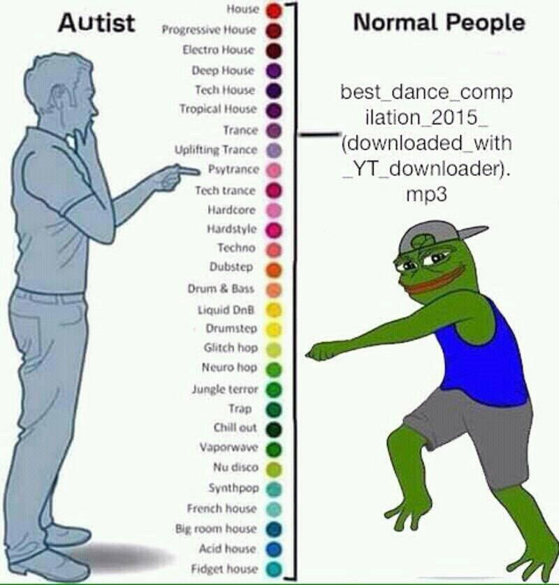 >>13226 > Там ценности-то ноль. Да вы тут совсем охуели, суперпозицию одних колебаний воздуха сравнивают с другими и еще и оценивают. Музыка довольно субъективна в плане получения удовольствия от прослушивания, и только аутисты это не понимают.