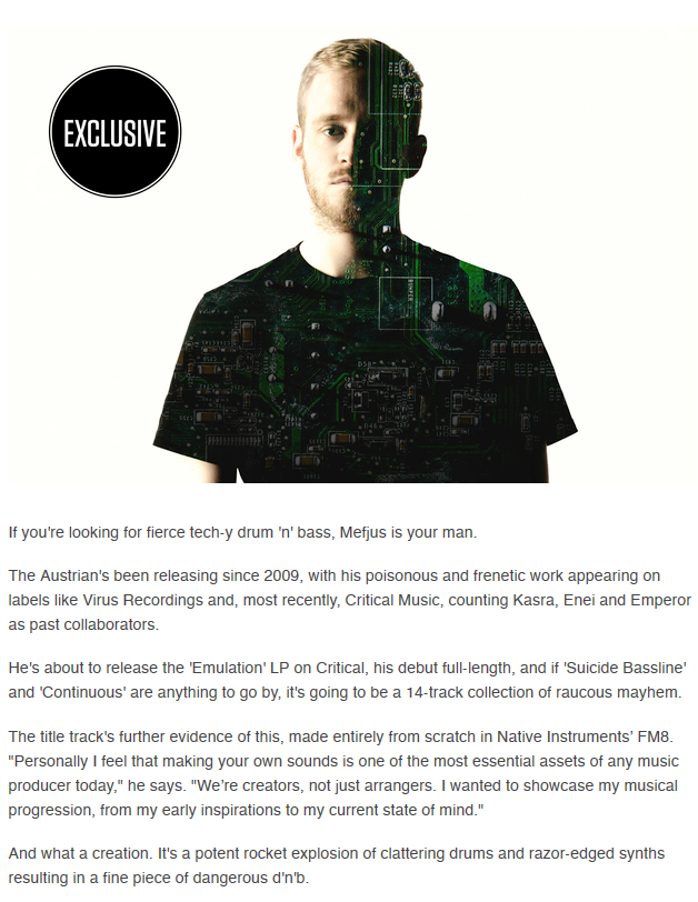 >>3997 >Он его включил для лулзов или по ошибке Никакой ошибки. Нельзя проигнорировать лейбл, на котором у Ноизии вышло 2 трека, да еще и совместные работы с русским продюсером. Это исторически значимые треки. А так же хит от Black Sun Empire.