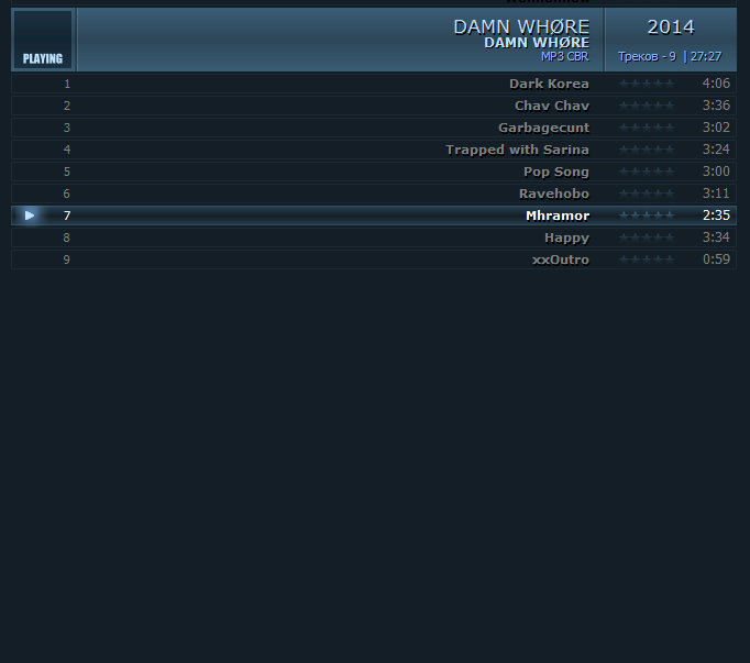 Damn Whøre, ты офигенный мэн. Поясни, почему не выходишь на связь (вбыдлятне)? Хотя всегда анлаен и даже постишь треки в паблик. Реально нагоняешь атмосферу таинственности на свою персону. Не ставлю целью деанонить тебя. Ты главное там будь здоров и радуй нас своим творчеством. Охуенно выходит.