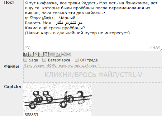 >>10951 Искал по запросам "Радость моя" "Радость моя группа" "Радость моя witch house" "радость моя 2ch" Скорее всего, где-то в последнем запросележит ссылка с этим