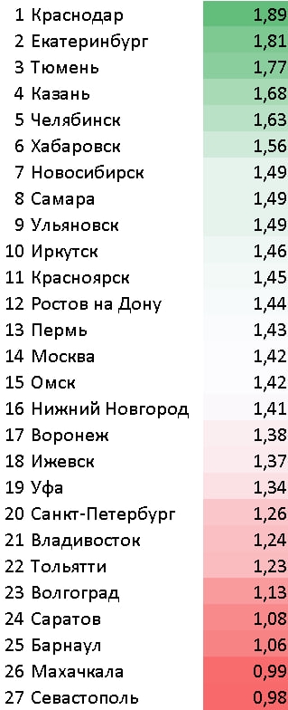 Москва, Питер и Краснодар в принципе играют в своей лиге, и город №3 страны в перспективе очевиден и неизбежен.