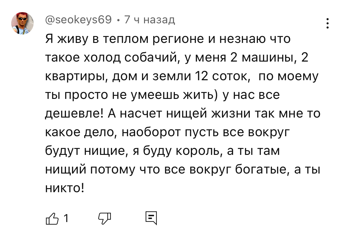 >>1188574 >Х-вордв, Зелёный Клин Хуйня, никто с хохлами себя тут не ассоциирует и кубаноидской культуры тут нет, не смотря на то что заселялись территории в свое время ещё до совка с малороссии. Ты просто перепутал с быдлом обыкновенным, но это точно такой процент как и везде в мухосрансках по России. Точечно есть хохлы которые застряли тут ещё при СССР и остались, также переселенцы после 2014-ого. Все плачут по донбасику и ридной неньке, но звонить 117 не спешат. >Жарко Внезапно, Южно-Сахалинск и все что южнее годнота по погоде и природе, имхо. Жил там пару лет, но пришлось уехать. Уж лучше чем в Хабаровске или Владивостоке. Но там цены чуть ли не самые высокие, выше наверное только на Камчатке. >низкие зарплаты Это правда. Смысла переезжать сюда нет, если только не предложили что-то прям сытое, но если честно больших смыслов переезжать именно в Краснодар тоже не вижу. Знаю много историй завернутых скуфов, переехавших туда (сердечко) либо просто вернувшихся семей.