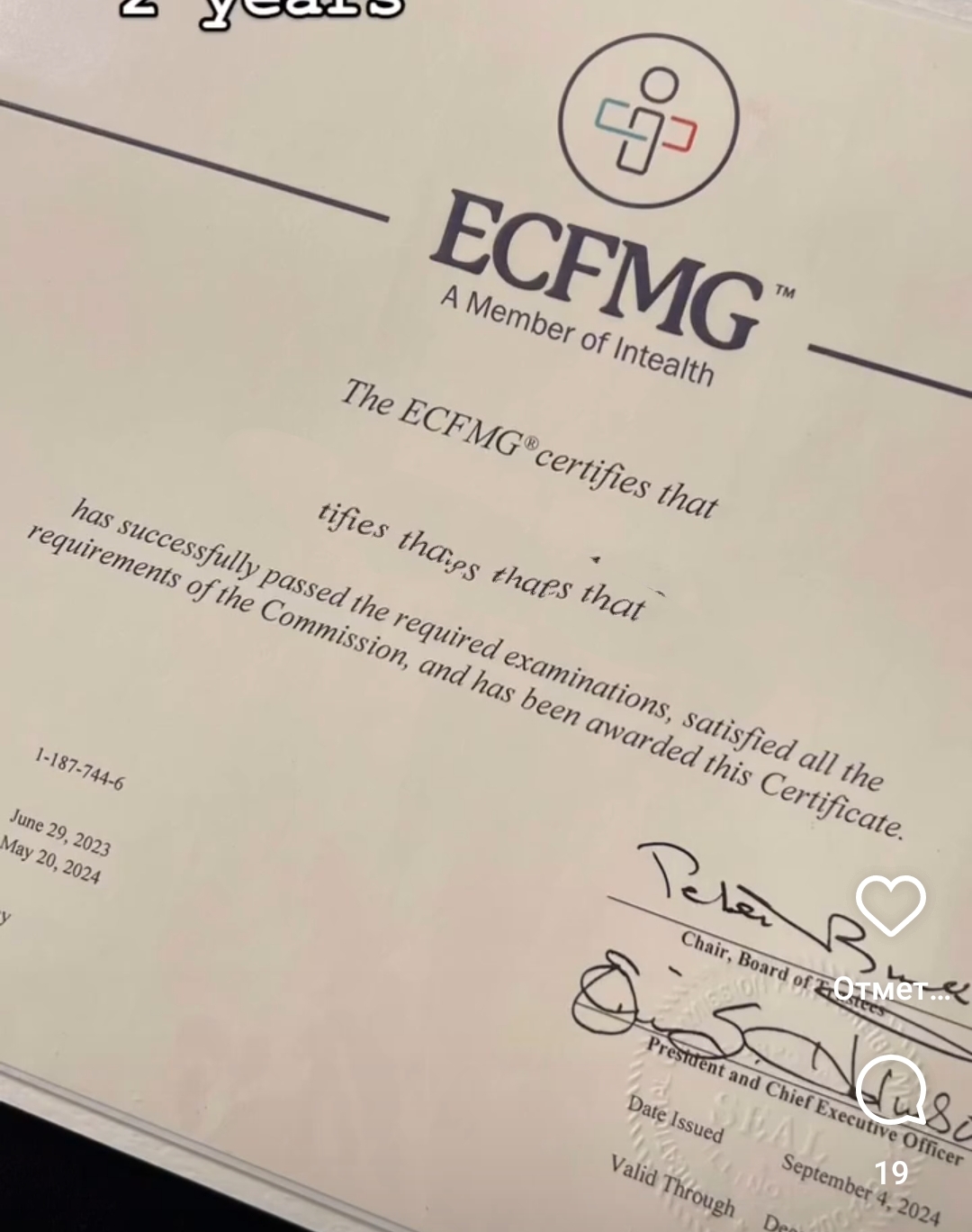 Это не значит, что она уже в резидентатуре. Впереди еще конкурс на поступление. Это самое сложное. Но она уже сделала многое. Ну или она закончила американский вуз? Хз