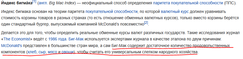 >>1193808 Анончик, все верно в твоей инфографике, только ты опечатался. Вот, я исправил картинку, теперь вся калькуляция соответствует цене бигмака в 186 рублей. Вообще забавно как оказывается, что в ДС жить экономически лучше чем в Нью Йорке. Как же жаль наших политических беженцев и понаехов в США, концы с концами там сводят, батрачат с утра до вечера чтобы жить от зарплаты до зарплаты, зато в США, ухахахахаха