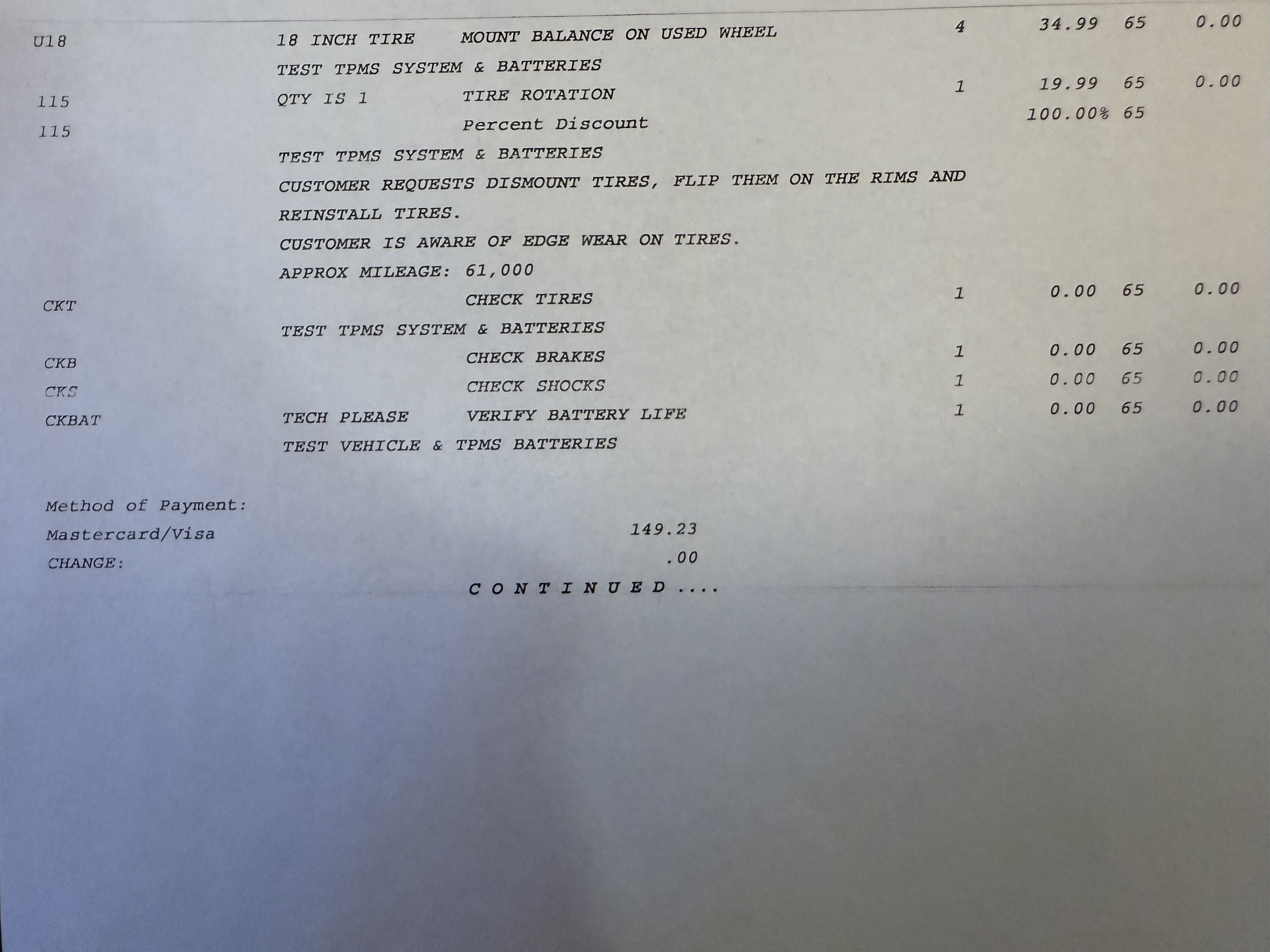 >>1193998 >Конкретные цифры Смотри. Это ротейшн с разворотом резины на дисках (У меня направленная резина и иногда я делаю именно такой ротейшн. И нет, знаю тут по любому вопросу спецы, это не алаймент, с ним все в порядке). $149.23 Достаточно конкретная цифра? Неси сколько такое стоит в РФ.