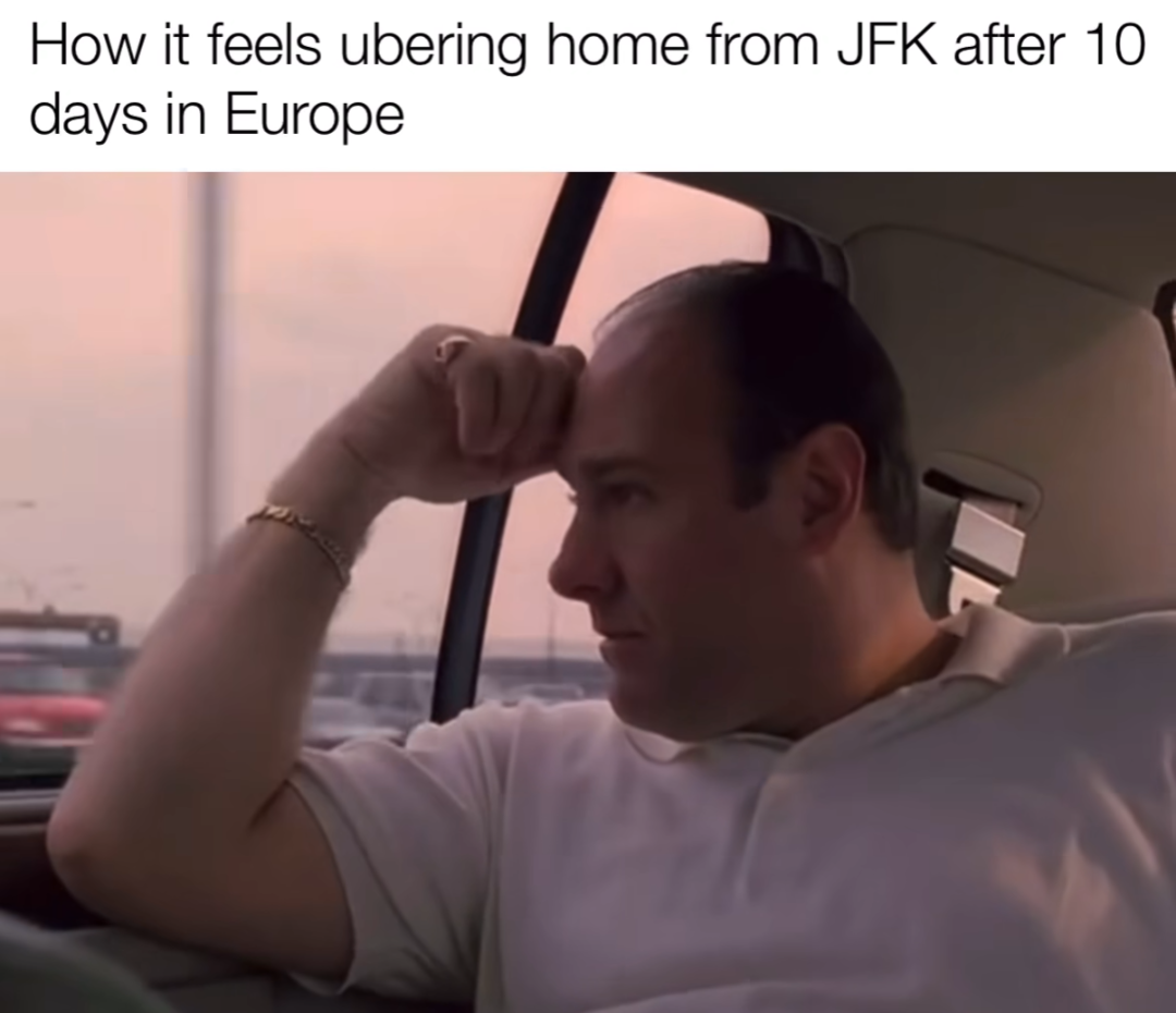 Я вообще сопранос не смотрел, так что мем понял наоборот, что типа этот чел улыбается от счастья, глядя на родной частный сектор у JFK с большими домами и газонами после европейской хрущевкоублюдии.