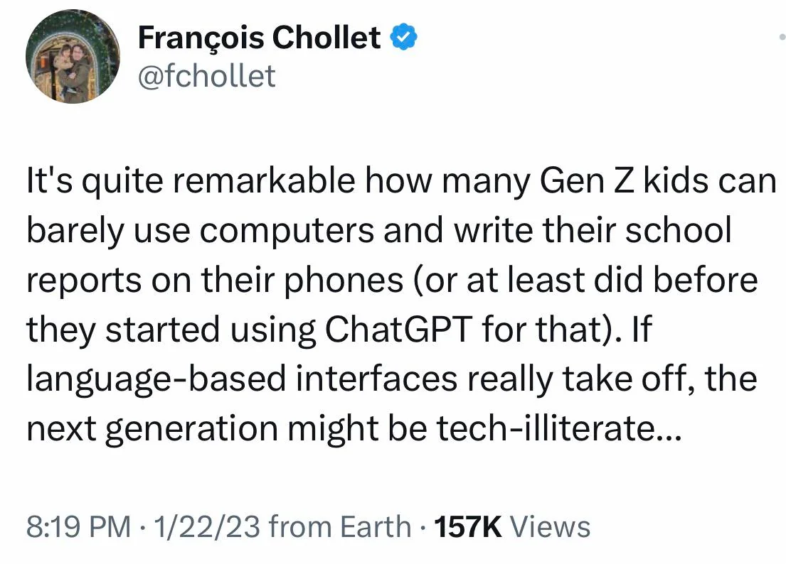 >>1202956 >такие работы еще остались?! Вон буквально недавно где-то жаловались, что зумеров ещё приходится гуглодокам учить, с сосничества в компуктерах сидят и нихуя не умеют.
