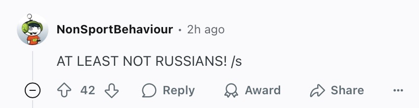 Ты вообще мои посты то ли не читаешь, то ли не в состоянии понять. Любая страна, где война нормализована и массово одобряется - дерьмо.
