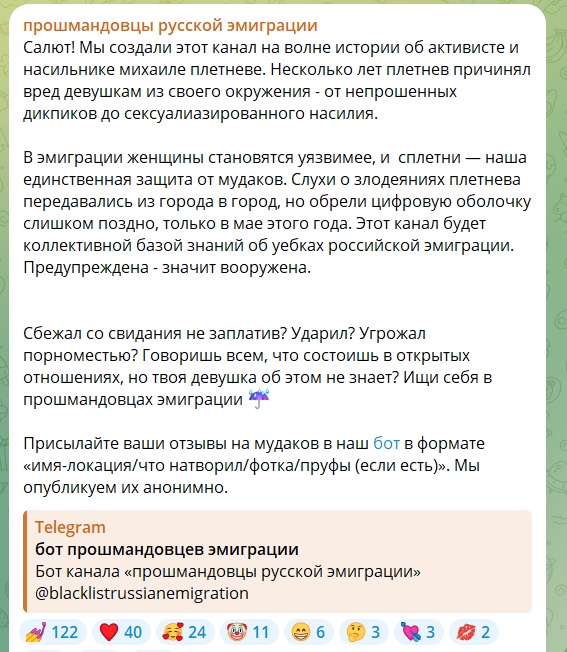 >>1205332 Уже ответный канал запилили. Рассказывайте про релоканток-тарелочниц которых вы водили в Патрики тщетно надеясь присунуть, а в итоге вас в чс добавили и опубликовали личные данные на прошмандовцах