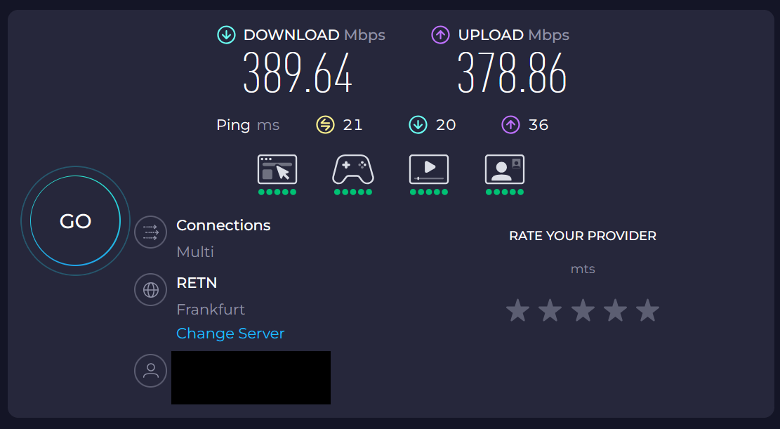 >>1205634 У меня роутер от MTS какой-то обычный но с кабелем от него до компа протянутым мной, до этого на другой хате был роутер от Yettel на антенном кабеле и там было ну чуть похуже 28<> 46< 52> циферки speedtest в тот же Фракфуркт.