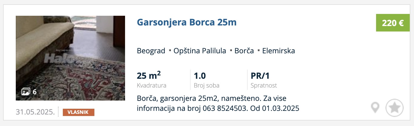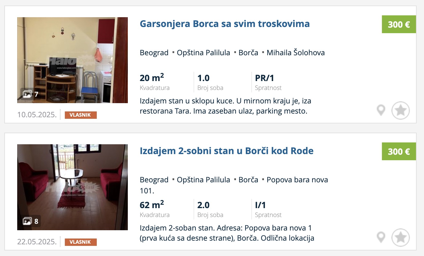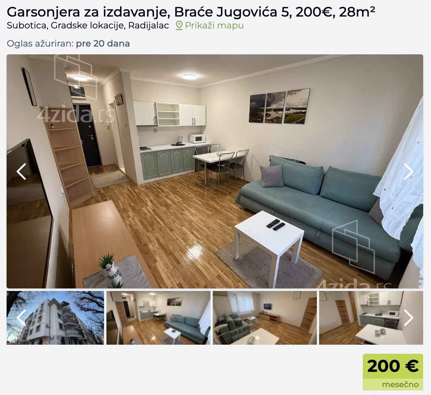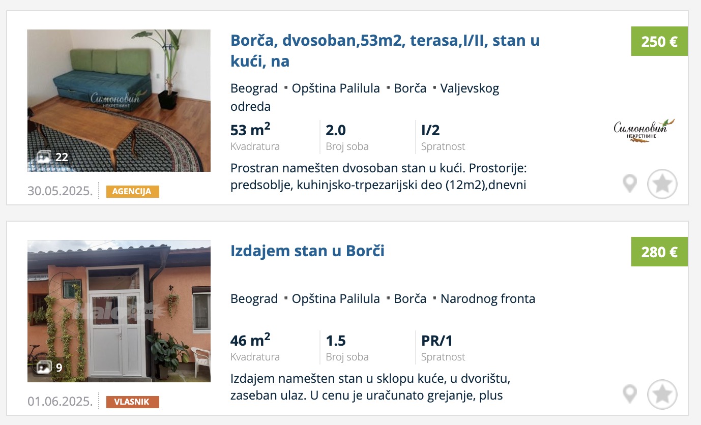 Вот в этом пункте мне видится ошибочный подход к поиску жилья. В Белграде живет очень много сербских иногородних студентов и работяг. Наверное, на порядки больше, чем русскоязычных "релокантов". Немалая часть из них снимает комнаты в 2-3-4-комнатных квартирах, что получается дешевле, чем снимать 1-комн. квартирку в соло.
