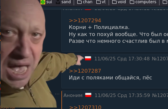 >>1209824 У меня ее нет. >Добро пожаловать в 2025, лол. Кстати, а что там поляки на хохлов бузят? Не надоело еще этому говну помогать? Какие местные настроения? Читал про бугурт местных на пикабу, что флаги запрещают вывешивать, пшеки от этого злятся, ну еще бы.