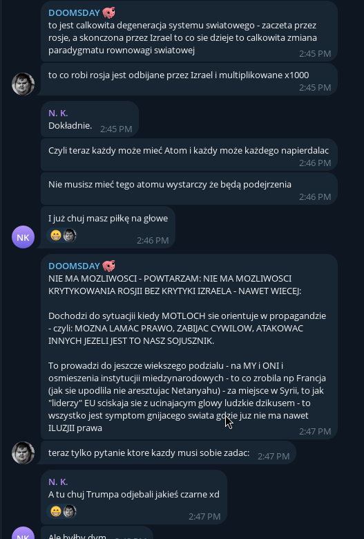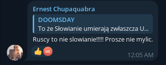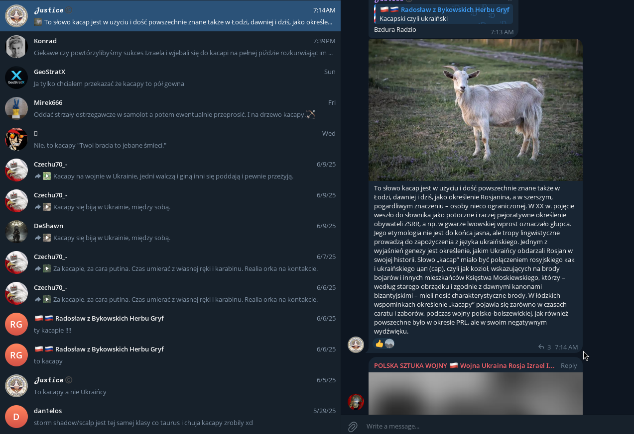 При том, что это вообще очень интересные пшеки, что они в принципе в ТГ сидят. В пшекистане, как и везде в гиропе, местные штатно сидят в цукербергозагонах - фб, инста, Вацап. А у телеги репутация мутной хуйни с наркобарыгами и хуй ещё знает кем, нормальному обычному человеку там нечего делать. Типа как Сигнал в РФ что ли или борд в торе, если тебе нужен этот мессенджер, то ты уже явно мутный и мутишь мутки, обычным людям оно просто нахуй не надо и они там не сидят априори.