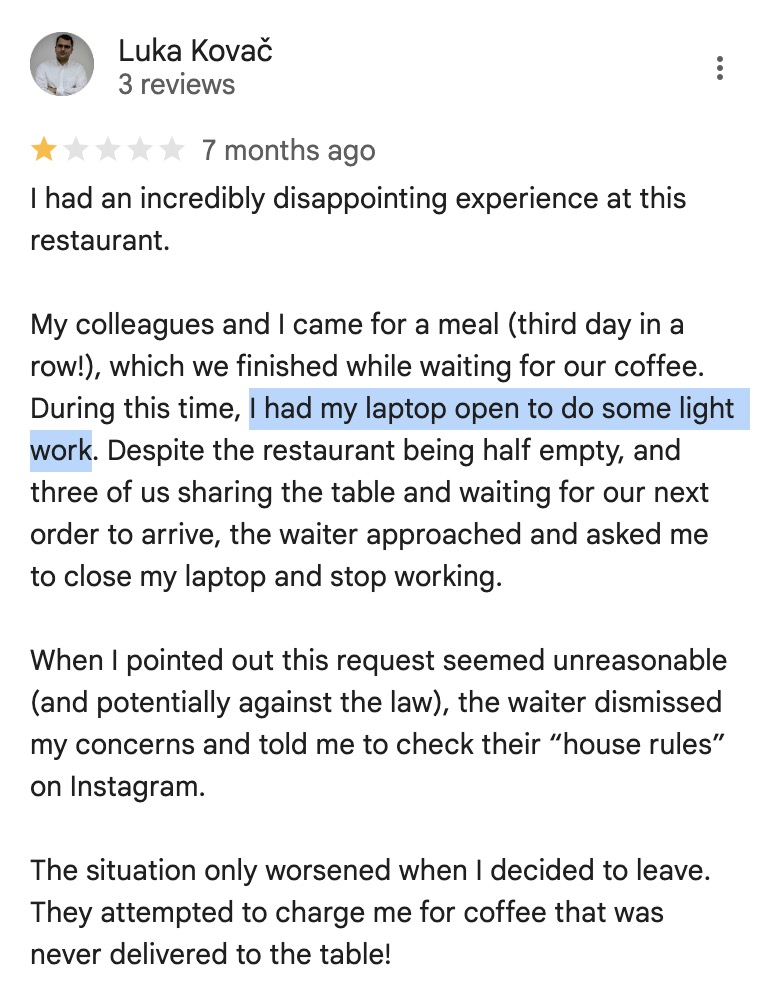 >>1211076 >Повышают оборачиваемость мест Ну вот кстати, я только у русов видела, чтобы в жральне предоплата была, лол. Они боятся, что я съебусь и не заплачу, а они ничего сделать не смогут, лол? И по этой же причине стрёмновато у них засиживаться, хотя там почти пусто днём. В нормальных жральнях не гонят клиента, потому что клиент может заказать что-то ещё, пока не попросил рачун.