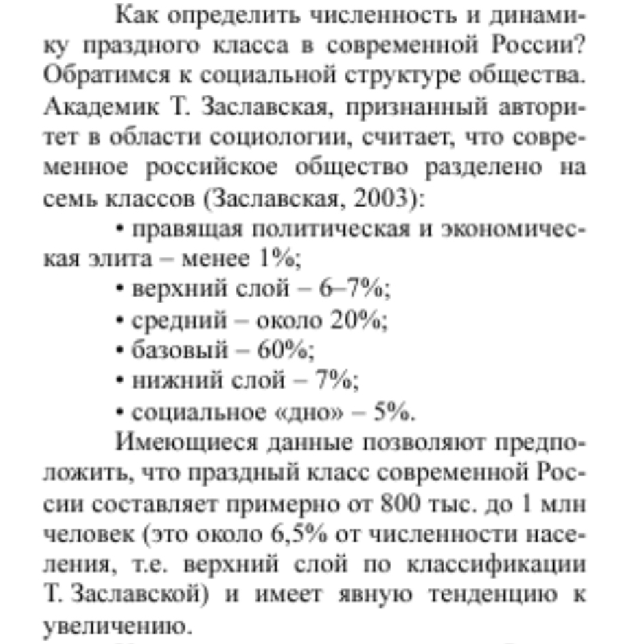 Нашел дурачкам с 1% цитату из научной работы. 6.5% в «нищей рашке» не делают ничего, кроме статусного потребления))) Еще наверное процентов 10 могли быть жить чисто со сдачи второй квартиры, просто не хотят. Оправдывайтесь.