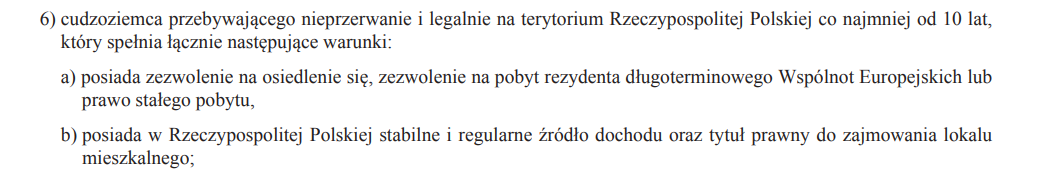 Можешь в любое время на имя пана пшезидента написать прошение о принятии тебя в пшеко обывательство, лол. Это пока что бесплатно (скоро хотят вроде 1600зл сделать пошлину). Рулеточка, но если ты белый и уже как-то связан с Польшей, то, говорят, до 30% вероятность позитивной децизии. Что ну немало так-то, при настолько низком входном пороге. Паджитов с махмудами вот реджектят по этой процедуре всегда