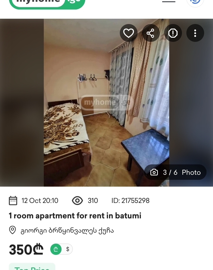 Сап, релоканты. Как сейчас в Батуми с арендой жилья? Вижу что в Орби студии сдают за 700 лари. Но мне нужен вариант для нищуков где-то за 400 лари на окраине. Где такое искать? Предложений для наносеков дохуя в телеге, а для нищуков ничего почти нет.