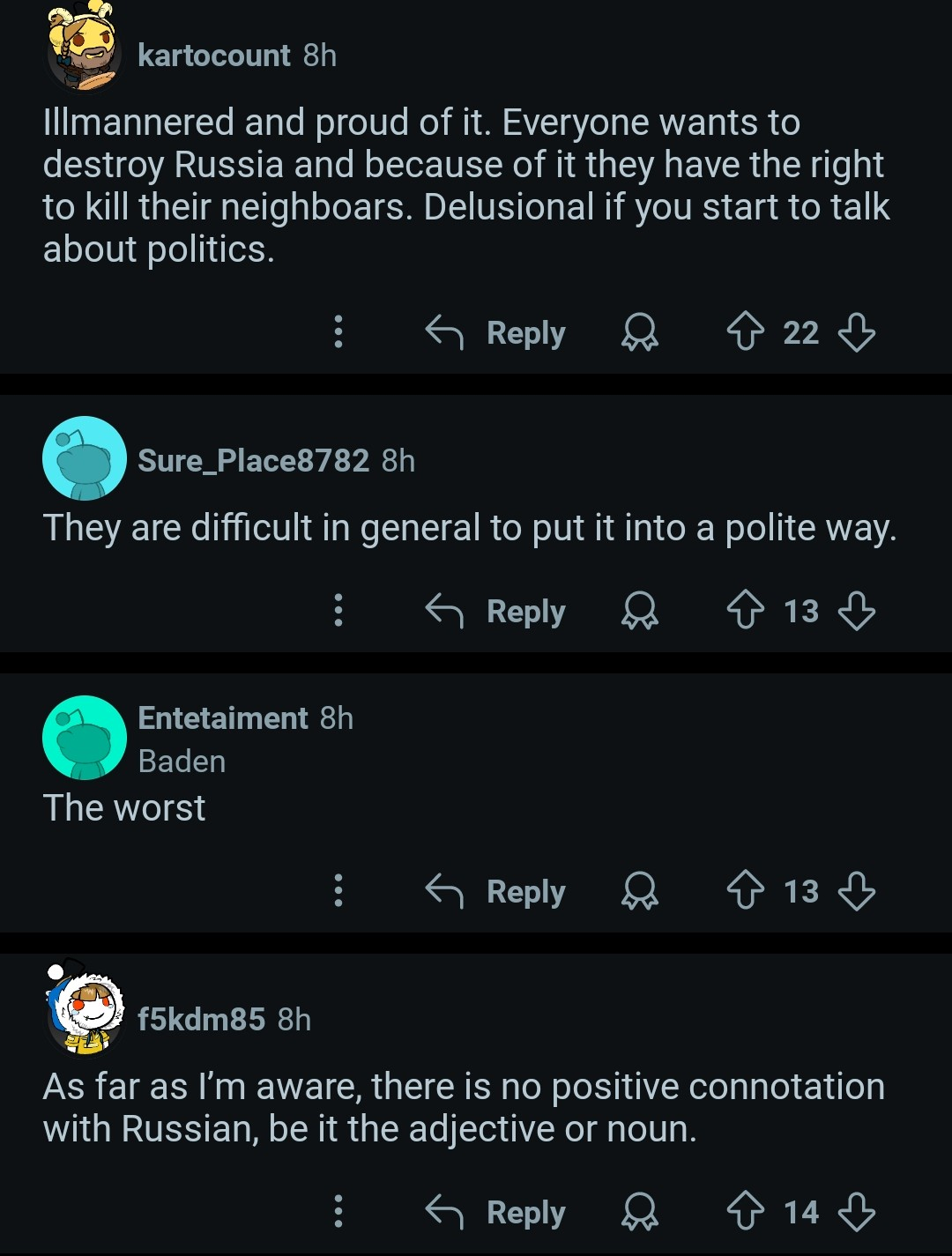 ну, и ещё реддит люто русофобский, там русских ненавидят буквально все, кроме завсегдаев 2-3 специальных досок