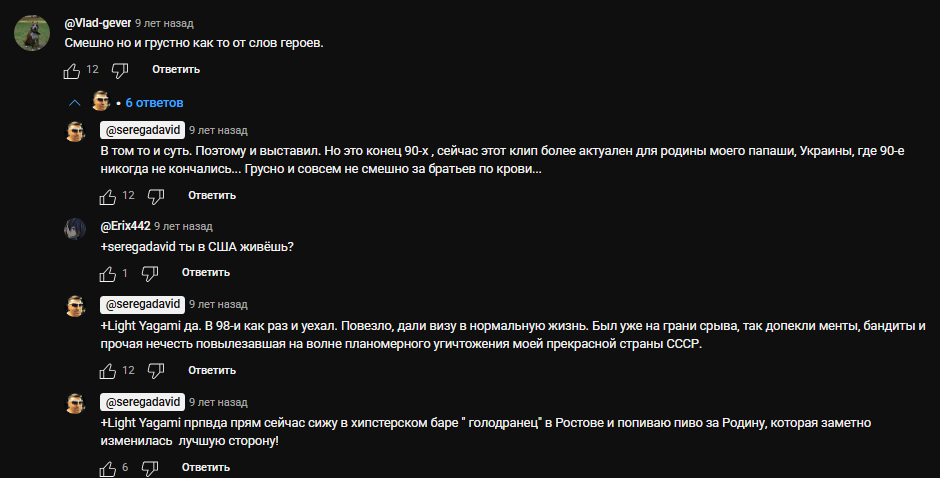 >>1227634 >а вот раньше при сталине Ну обычно когда говорят о совке, то имеют ввиду поздний совок времен Брежнева и новее. >Писсраиль был относительно дружелюбен На официальном уровне как раз не был. Дипотношения в 1991 восстановили или типа того. Да и писали из штатов и канад в том числе. Офк, я уверен, что была перлюстрация, но письма на бытовые темы ходили. >исключением для богоизбранных Ой, мань, а ирл у скольки процентов россиян были родственники за границей, кому им писать? На момент развала булкохрустии 90% населения крестьяне, которые дальше своей деревни и отходничества в город ничего не видели. А так сам тезис связи не было - хуета. У моей маман в качестве обязаловки в школе в 60-е, например, была переписка с рандомными детьми из стран советского лагеря.