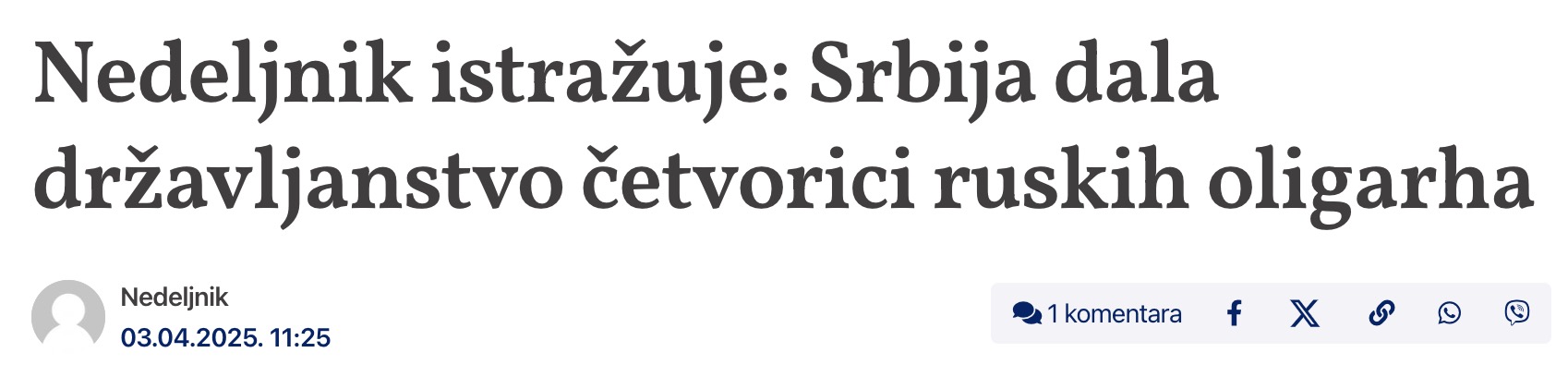 >>1238370 >Я подозреваю, что там тупо Пыня на стол Вучичу положил список тех, кому паспорта сербские надо выдать, в обмен на скидки на газ. Понимаю что Пыня может так сделать. Не понимаю зачем им паспорта Сербии блять. Может Науру еще прикупить или Микронезии какой-нибудь?