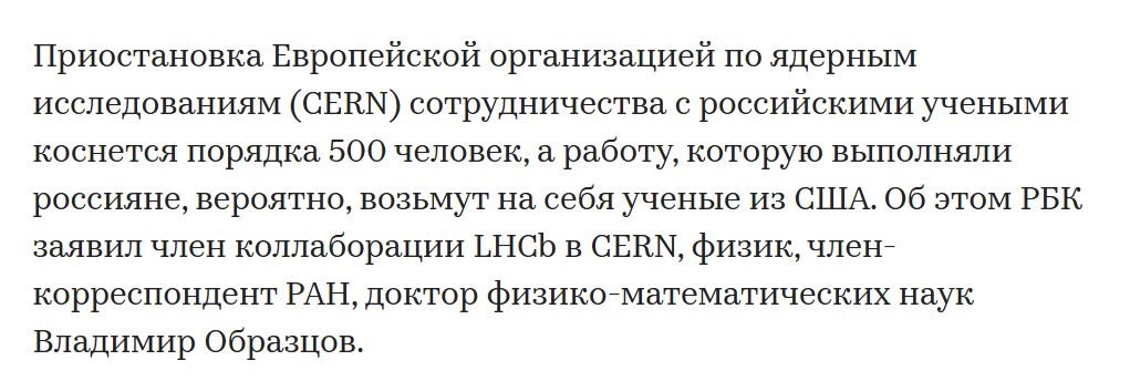 Я тебе прислал опровержение: >>1241520 "30 июня состоялось вручение дипломов выпускникам второй совместной образовательной программы НИТУ «МИСиС» и CERN «Перспективные решения, технологии, методики и материалы для поиска новых физических эффектов». Девять лучших выпускников, среди которых студенты НИТУ «МИСиС» и МГУ им. М.В. Ломоносова, получили приглашение на стажировку в CERN с возможностью дальнейшего трудоустройства." https://panor.ru/articles/studenty-mgu-i-nitu-misis-poedut-na-stazhirovku-v-cern/46812.html#