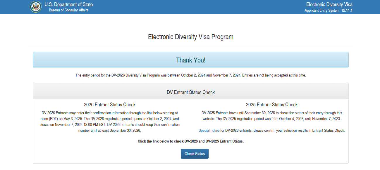 Заявки на 2027 принимаются с октября по ноябрь 2025. неизвестно когда "в ближайшие месяцы". Мониторим аноны, не рассдлабляемся. Результаты в мае 2026 в 19:00 по московскому времени (MSK). Точную дату начала объявят позже. Стоимость участия в лотерее теперь 1$ и оплатить её можно только с иностранной карты.