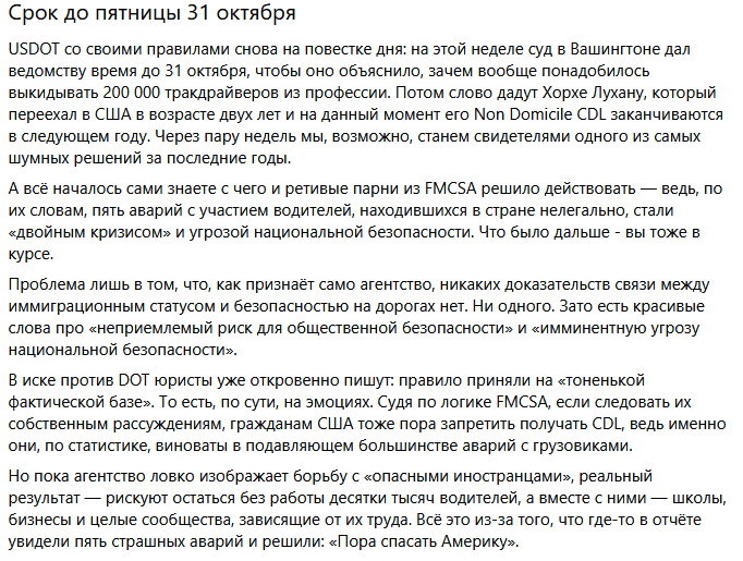 >>1253108 Дада, никто не выигрывает, не переезжает. Кто приехал, они ни в коем случае не идут водить трак. А кто по нелепой случайности водит, то все работают исключительно в американских фирмах. Ведь все хотят работать по закону и зарабатывать 4к в месяц, и конечно же все они достаточно хорошо знают английский. Долбаеб.