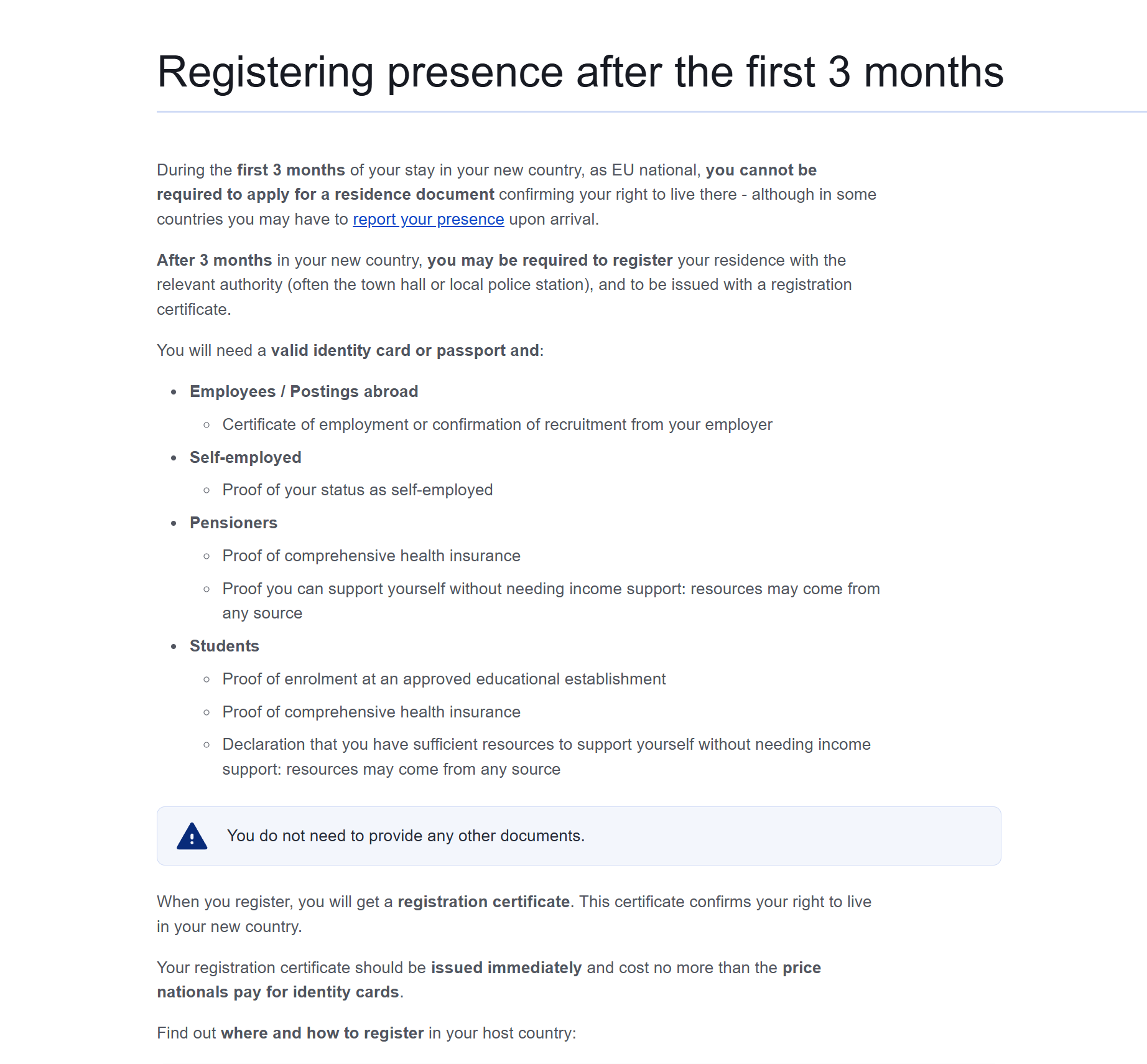 >После 90 дней, проведенных европейцем в другой евростране, ты должен, чтобы продолжать находиться в стране легально, оформить registration certificate.