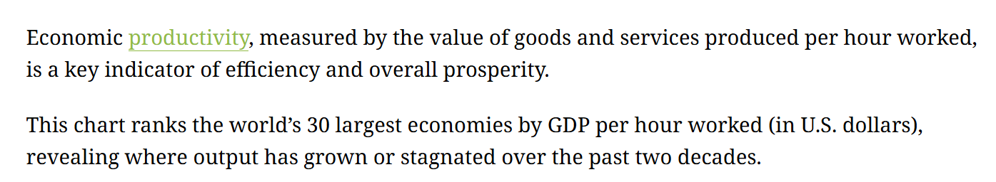 >>1259673 >мнение >выпуск на человека в час по номиналу Ну можешь относиться с изрядной долей иронии. Если в сельском хозяйстве и промке как-то еще можно адекватно оценить, то в услугах, которые 60-80% ввп развитых стран, сложновато. Тебя что в Дели постригли что в Эйндховене за полчаса. Только в первом случае за пирожок с картохой, а во втором за 50 евро. А результат одинаковый.
