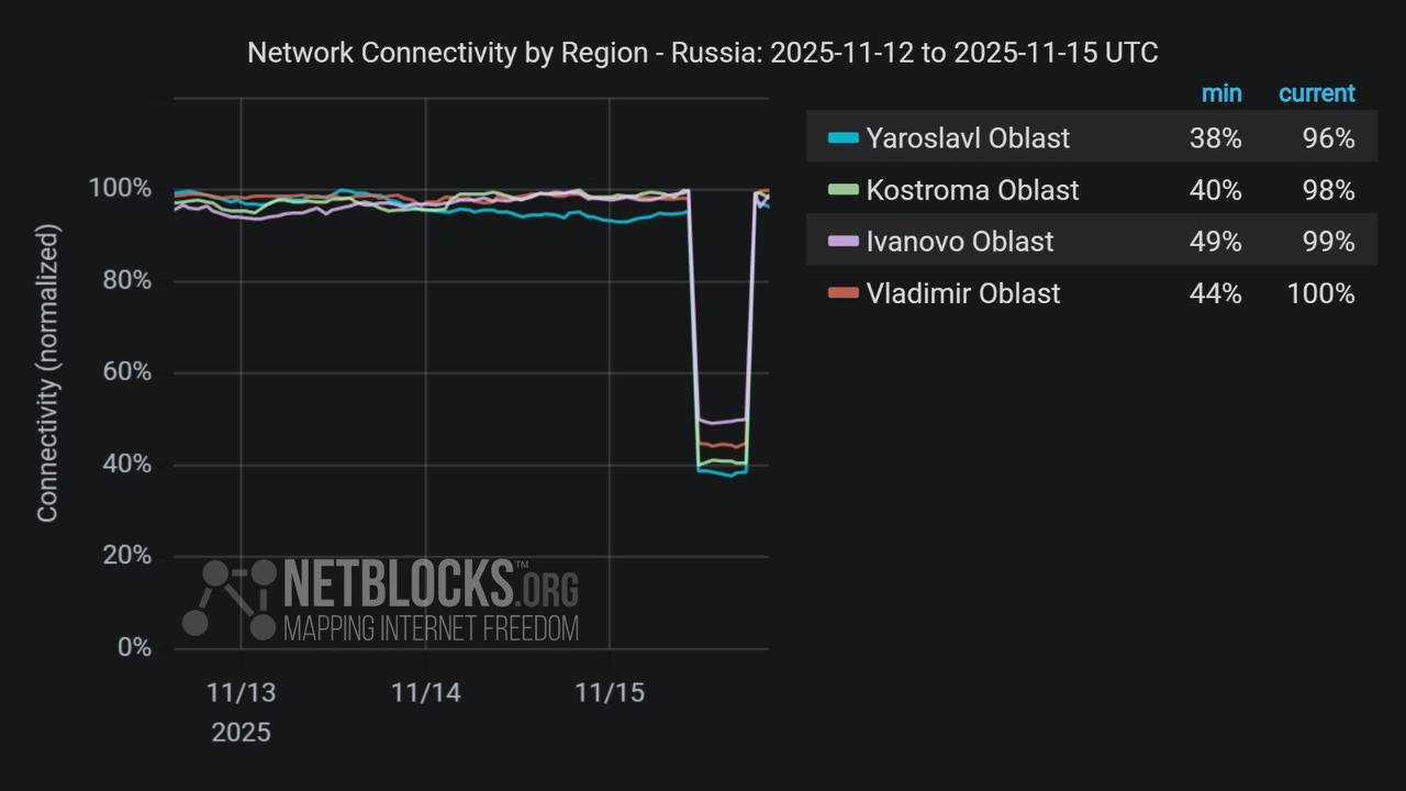 Повреждение было зафиксировано под Ярославлем, из-за чего интернет от провайдера пропал во Владимирской, Ивановской, Костромской областях и Ярославской области.