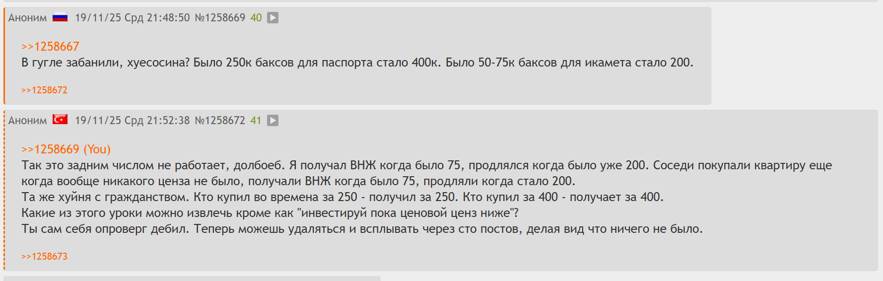 >>1258693 Самое потешное что ты обосрался приведя в пример Турцию, которая никак не ухудшила положение ранее инвестировавших в недвижимость, как пример того как страшно инвестировать без паспорта, а теперь обмазываешься своим обсером, не имея мозгов родить что-то кроме "пук среньк кебаб".