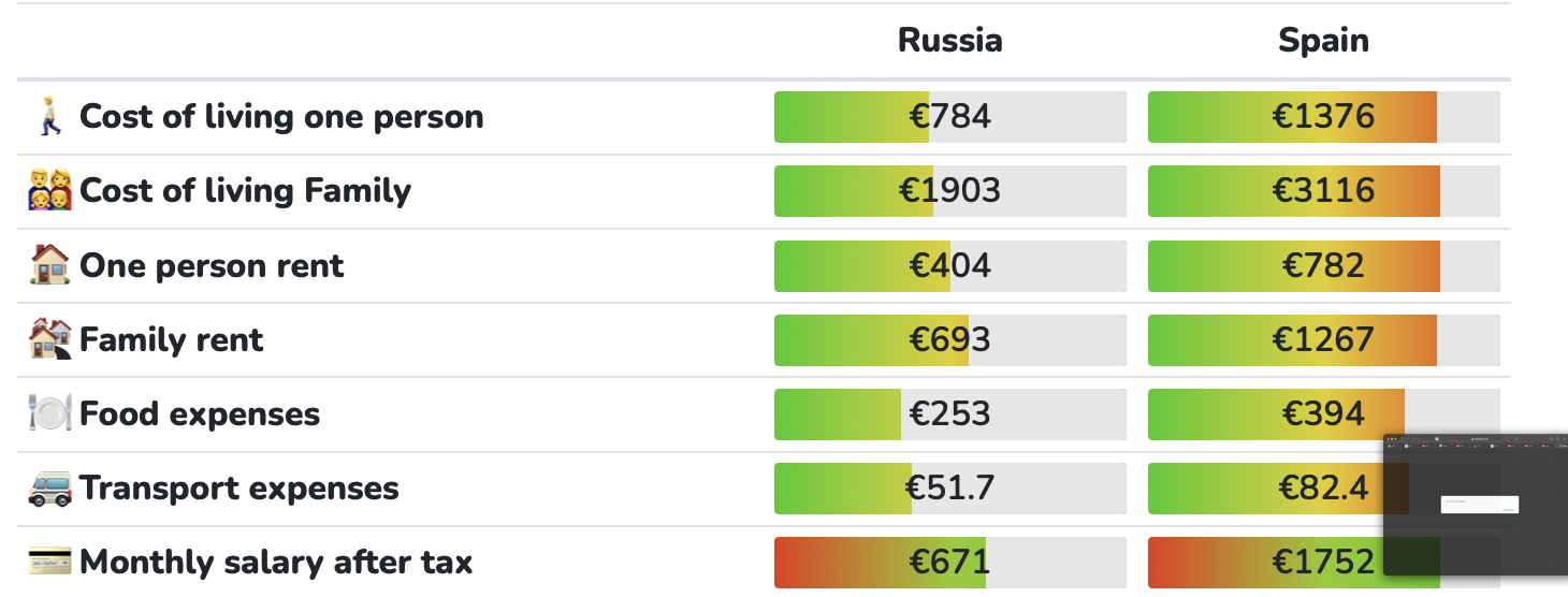 >>1259523 Хули тут сравнивать вон на чек сверху посмотри. Ну испанцы со средними зряплатами в 2000 удачи им завтракать на 30 евро. И ужинать еще не дома лол. Держи карман шире блять))))