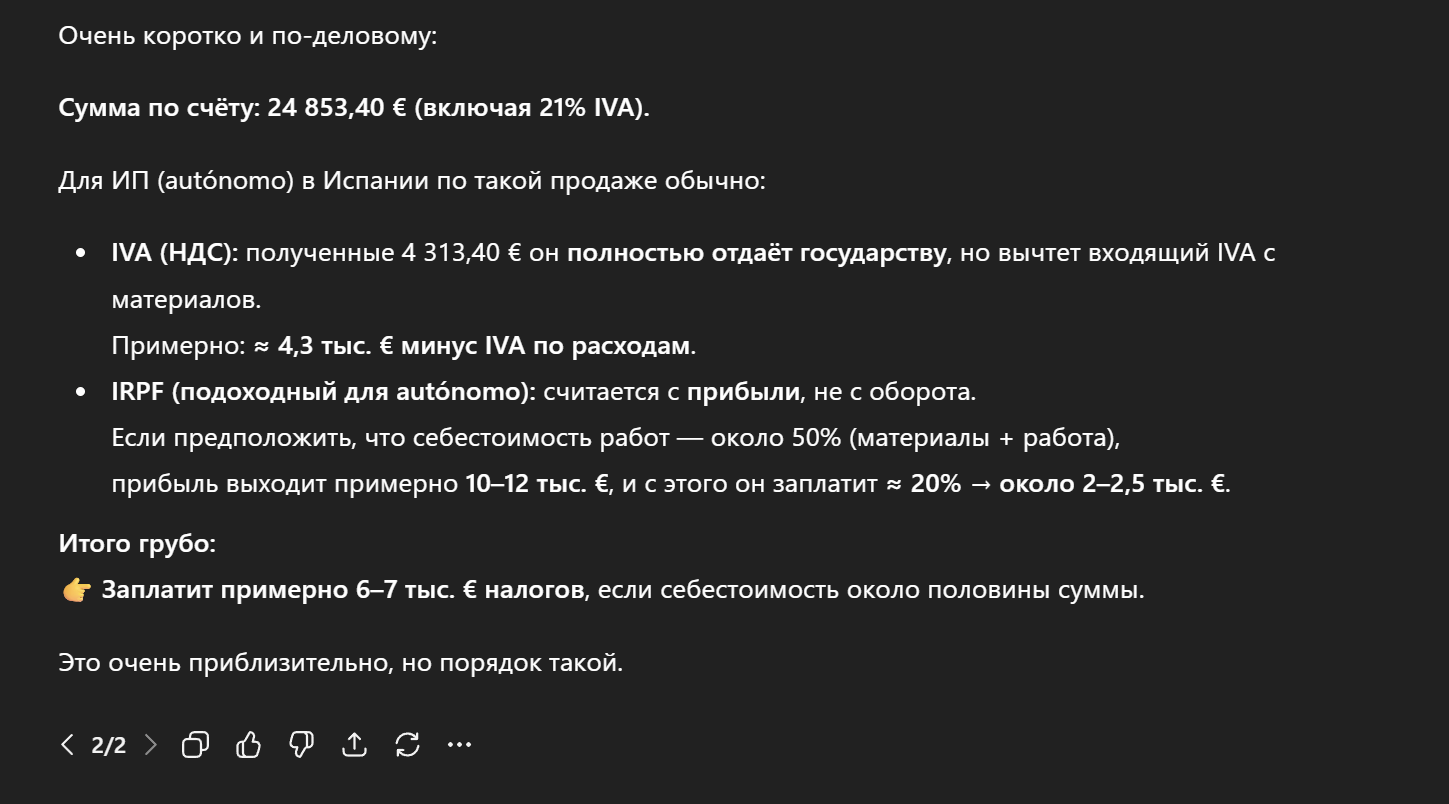 Что по налогам? Обязательно пользуйся услугами хестора - это не дорого. А сам обязательно обосрешься. Налоговый калькулятор для autonomo https://autonomoinfo.com/en/ Налог считается с чистой прибыли, в расходы можно списывать очень много чего - частично аренда и коммуналка, техника, расходы по работе, расходы на детей и т.д. Можно оформить режим Бэкхема - 24% с дохода. Думай как следует, нужно ли.