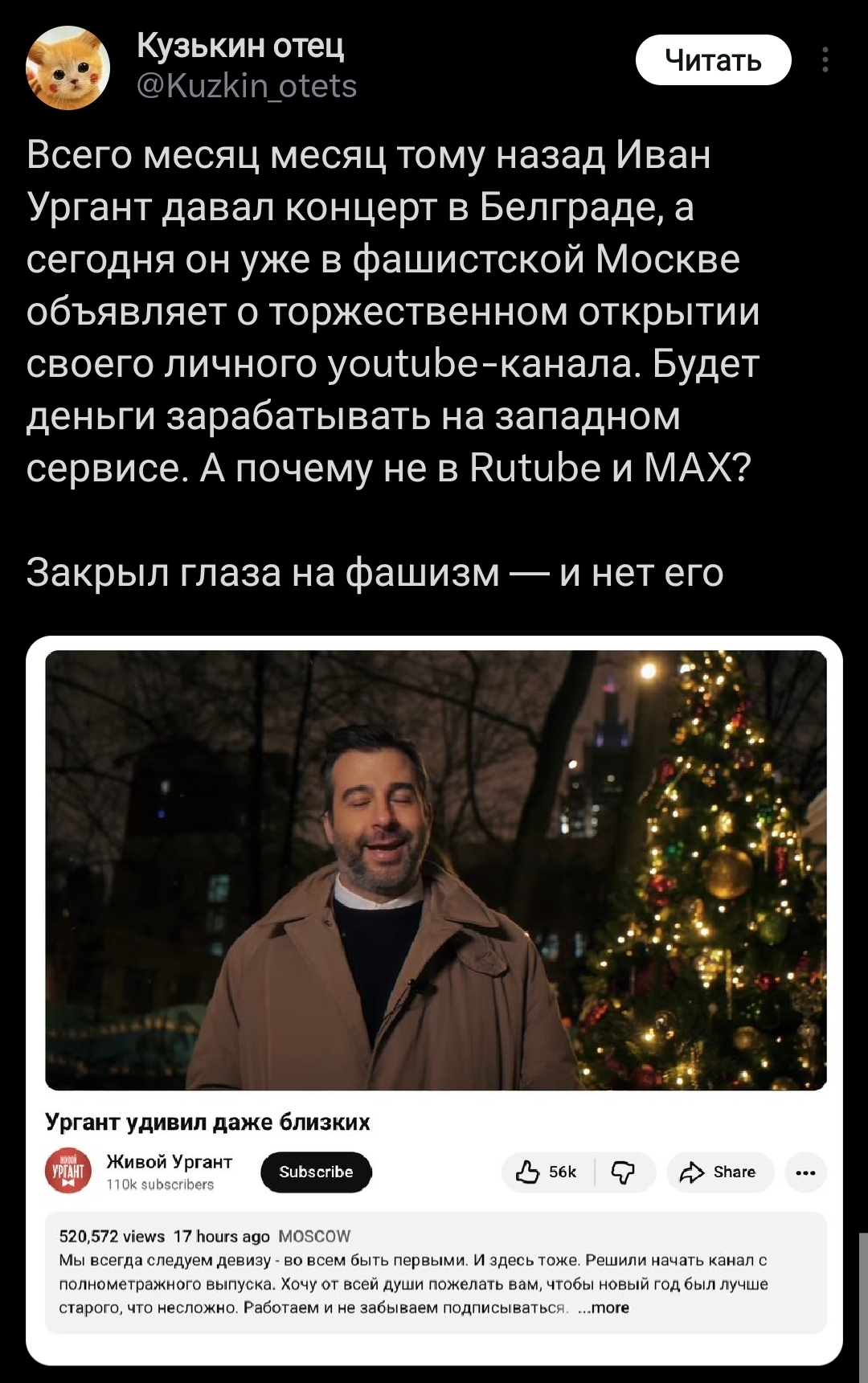 >>1266594 Какой стрим? я в танке. > встречаемся с подписчиками Очевидно, потому что я не пользуюсь подписками на ютубе, только по RSS (он там ещё работает), и то пару каналов буквально.