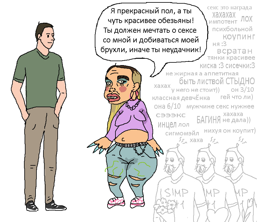 Ну и это мнение подкреплчеься логикой, подавляющее большенство местных тянок свето убеждено, что прогрессивизм это гуд, мечтают о парнях маскулинных по "новому", чтобы создать "деконструированые" отношения.